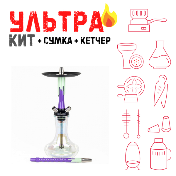 Купите Набор с кальяном Mamay Customs Flow сирень фисташка (24 см) ВСЕ ВКЛЮЧЕНО по цене 25 370 руб. с доставкой в Мурманск от сети кальянных магазинов ИванКальян.РУ.