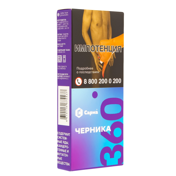 Купите Табак Сарма 360 Лёгкая Черника 40 грамм по цене 359 руб. с доставкой в Мурманск от сети кальянных магазинов ИванКальян.РУ.