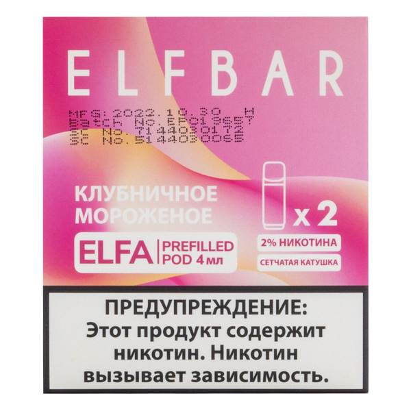 Купите Картридж Elfbar X2 Elfa 20 Мг 4 Мл Клубничное Мороженое по цене 1 490 руб. с доставкой в Мурманск от сети кальянных магазинов ИванКальян.РУ.