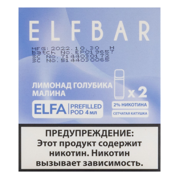 Купите Картридж Elfbar X2 Elfa 20 Мг 4 Мл Лимонад Голубика Малина по цене 1 490 руб. с доставкой в Мурманск от сети кальянных магазинов ИванКальян.РУ.