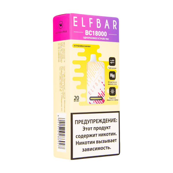 Купите Электронка ElfBar BC18000 Клубника Банан 20 Мг по цене 2 590 руб. с доставкой в Мурманск от сети кальянных магазинов ИванКальян.РУ.