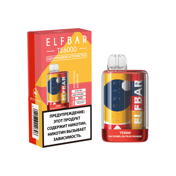 Купите ЭСДН ELF BAR Te Арбуз Груша Апельсин 6000 затяжек по цене 1 590 руб. с доставкой в Мурманск от сети кальянных магазинов ИванКальян.РУ.