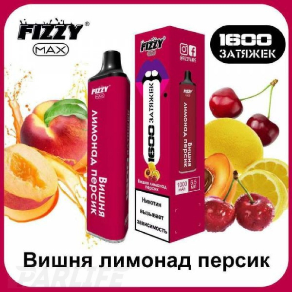 Купите Одноразовая электронная сигарета FIZZY Max Cherry Lemonade Peach (Вишня Лимонад Персик) 1600 затяжек по цене 719 руб. с доставкой в Мурманск от сети кальянных магазинов ИванКальян.РУ.