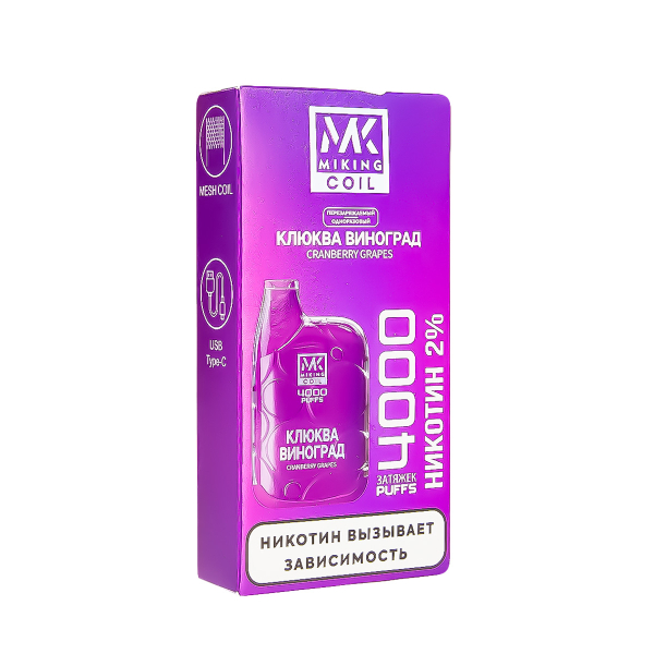 Купите электронная сигарета Miking Клюква Виноград 4000 по цене 1 090 руб. с доставкой в Мурманск от сети кальянных магазинов ИванКальян.РУ.